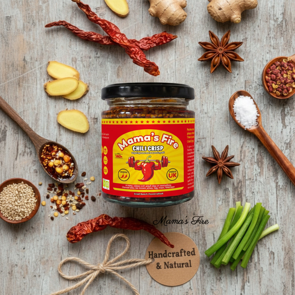 I grew up running into Mum’s kitchen, where her secret chili crisp filled the air with love. When I moved to the UK, I missed that taste of home so much I brought her recipe back to life. Handcrafted in small batches, refined again and again until it was just right: bold, fruity heat with Sichuan soul, yet light and guilt-free. Mama’s Fire isn’t just sauce; it’s a hug from home in every drop.